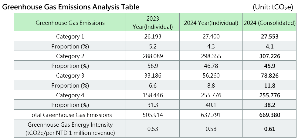 To enhance risk assessment and management, inergy Technology will conduct a GHG inventory in ISO 14064-1:2018 in 2023, with third-party verification in 2024. 2023 will be the base year for its inventory convering direct GHG emissions (Category 1), purchased electricity (Category 2), upstream transportation (Category 3), and raw material purchases and wastes (Category 4). This inventory will be updated annually, and the improvement targets will be based on annual reviews.