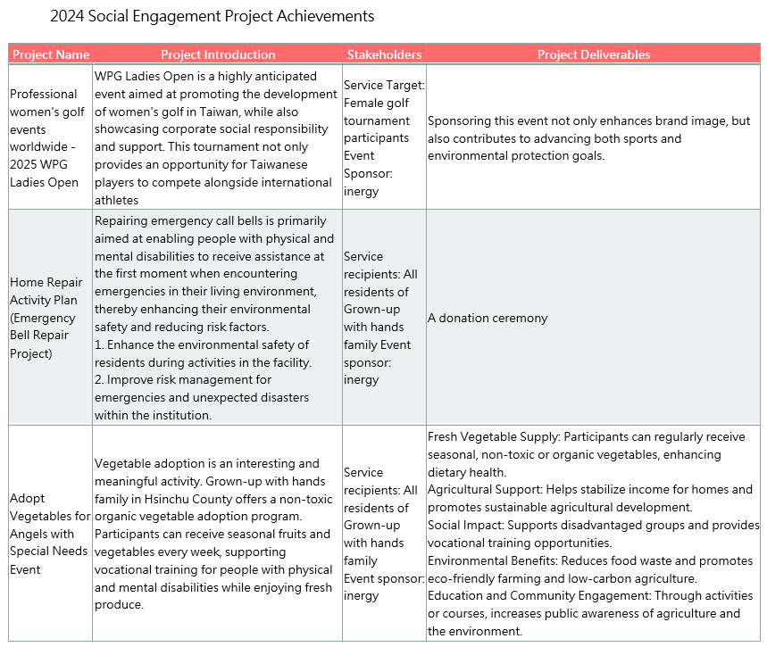 inergy Technology balances business growth with social contribution, adhering to the principle of "giving back to society." Our commitment to life and the underprivileged is reflected in our consistent support through donations and resource allocation. We also dedicate resources to environmental protection and awareness as part of our corporate responsibility.